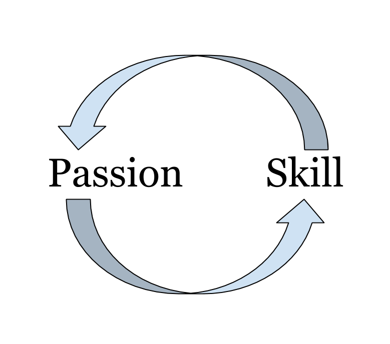 Maybe the right advice should be “Follow your talent(s)”. When we become good (ie, above average) at something, it is very likely that we yoke skill building to talents.