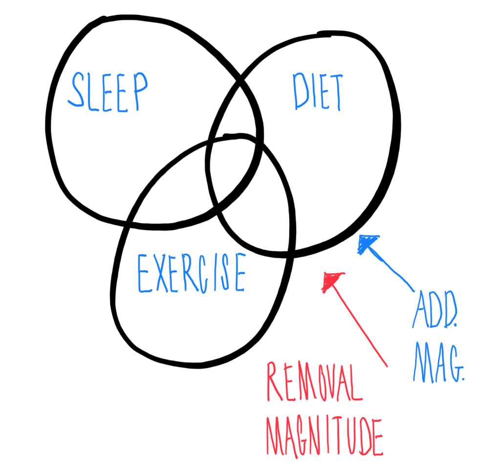 My other observation was the power of via negative. This is the idea that we can gain from not-doing rather than doing. Avoiding the wrong foods is more powerful than consuming the best ones. But removal is a brute force weapon. It does a lot of work but it only works to a point.