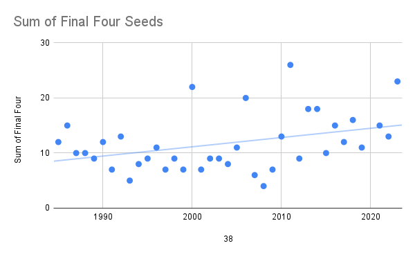 “If you asked me right now to update my belief,” Wharton Professor Eric Bradlow said before the Sweet Sixteen, “about the sum of the seeds of the Final Four I’m trying to decide if I would be over or under 10.5.”